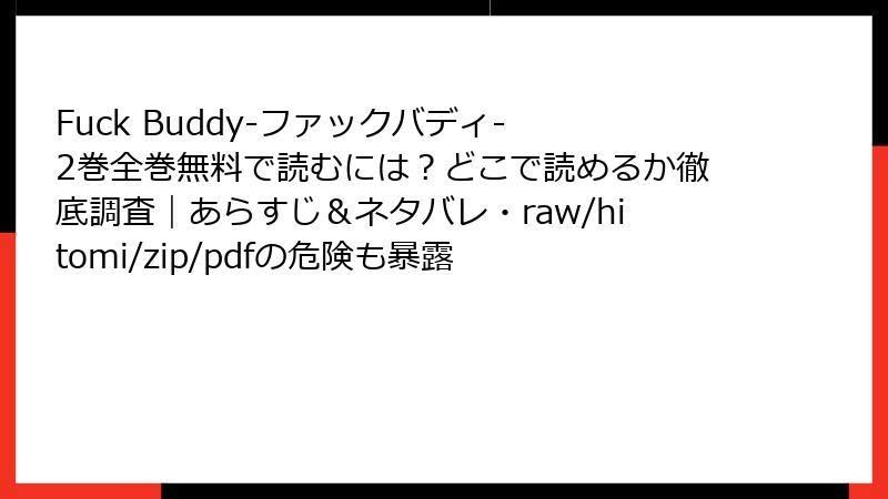 BL漫画「Fuck Buddy-ファックバディ-」のような人気作品を、raw、hitomi、zip、pdf、漫画バンクなどの海賊版サイトで無料で読む行為は、一見便利に思えますが、さまざまな深刻なリスクを伴います。これらのサイトは著作権を侵害した違法コンテンツを扱っており、利用者は知らず知らずのうちにトラブルに巻き込まれる可能性があります。以下では、法的、セキュリティ、倫理的、経済的などの観点からリスクを詳しく解説します。海賊版の利用はおすすめできません。