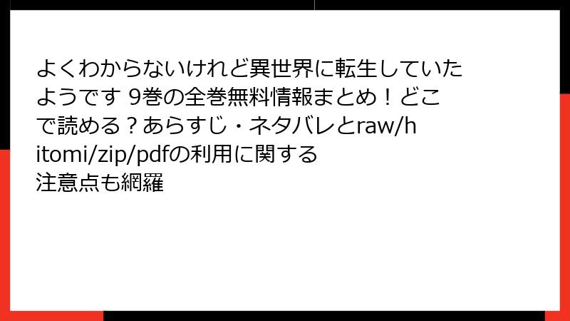 よくわからないけれど異世界に転生していたようです 9巻の全巻無料情報まとめ!どこで読める?あらすじ・ネタバレとraw/hitomi/zip/pdfの利用に関する注意点も網羅