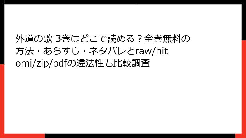 人気の復讐漫画『外道の歌』3巻を、raw、hitomi、zip、pdf、漫画バンクなどの海賊版サイトで読むことは、手軽に思えるかもしれませんが、深刻なリスクを伴います。これらのサイトは著作権を無視した違法アップロードが主流で、利用者は法的・セキュリティ面で大きな問題を抱える可能性があります。以下では、そのリスクをカテゴリ別に詳しく解説します。海賊版の利用は避け、正規の手段で楽しむことを強くおすすめします。