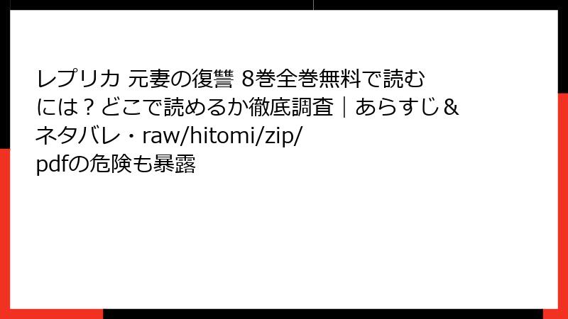 人気漫画「レプリカ 元妻の復讐」をraw、hitomi、zip、pdf、漫画バンクなどの海賊版サイトで読むのは、無料で手軽に思えるかもしれません。しかし、これらのサイトを利用することは多大なリスクを伴います。この記事では、海賊版サイトの利用がもたらす法的、セキュリティ、経済的、倫理的側面からの危険性を詳しく解説します。海賊版はクリエイターの権利を侵害する行為であり、決して推奨できません。以下で具体的なリスクを掘り下げていきましょう。