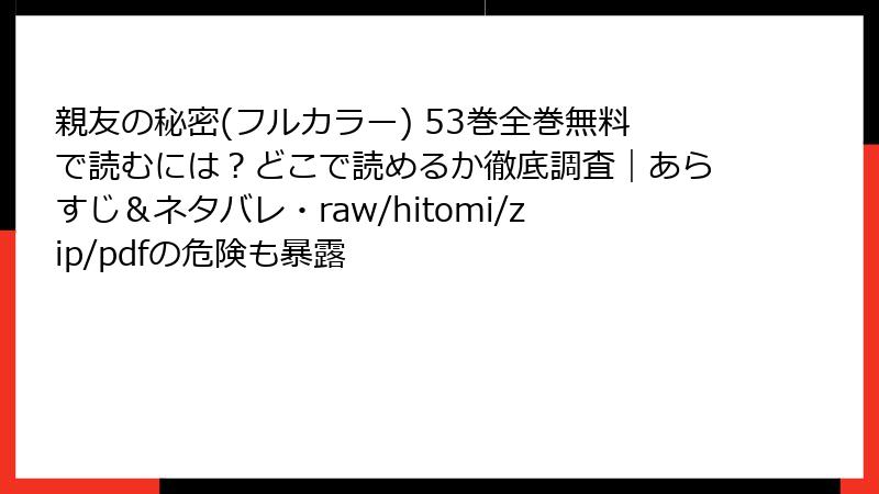 親友の秘密(フルカラー) 53巻を海賊版サイトで読むリスク詳解