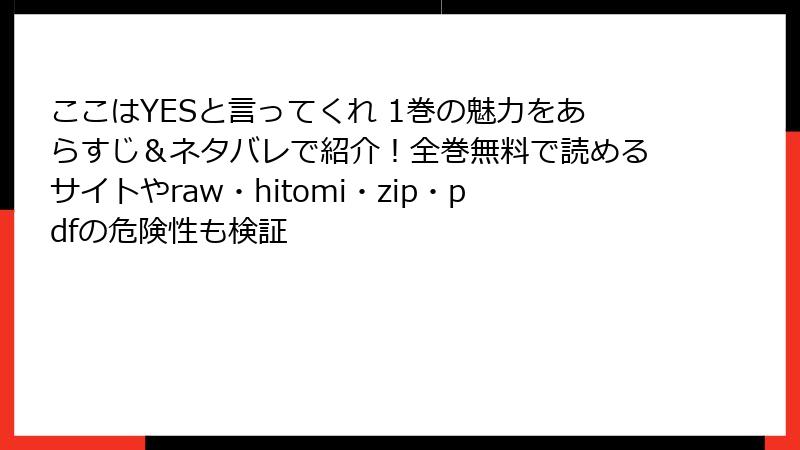 ここはYESと言ってくれ 1巻の魅力をあらすじ&ネタバレで紹介!全巻無料で読めるサイトやraw・hitomi・zip・pdfの危険性も検証
