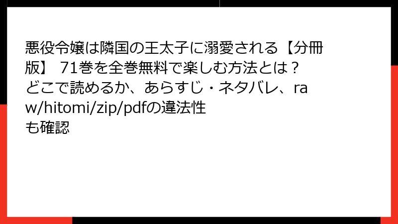 悪役令嬢は隣国の王太子に溺愛される【分冊版】 71巻を海賊版サイトで読むリスク詳解