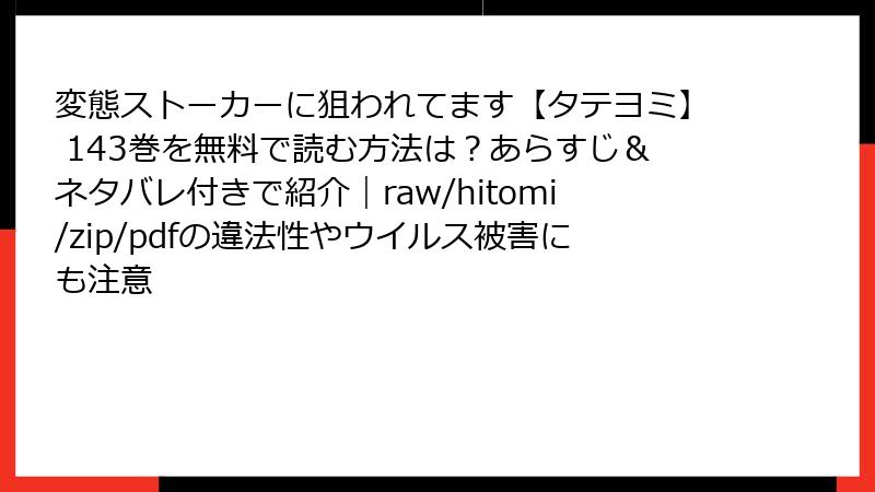 変態ストーカーに狙われてます【タテヨミ】 143巻を無料で読む方法は?あらすじ&ネタバレ付きで紹介|raw/hitomi/zip/pdfの違法性やウイルス被害にも注意