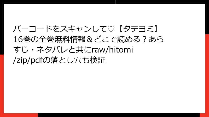 縦読みスタイルのフルカラーマンガとして人気を集めている「バーコードをスキャンして♡【タテヨミ】」。エロティックな要素を交えつつ、ファンタジー要素のあるストーリーが魅力です。この記事では、16巻に焦点を当てて詳しいあらすじをブログ形式でご紹介します。全体の流れを振り返りながら、読み応えのある内容に仕上げました。ネタバレ注意でお願いします!