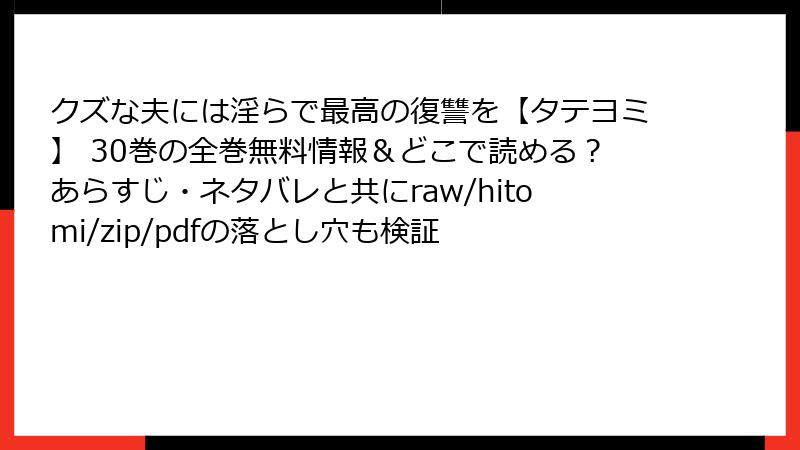 人気のタテヨミ漫画「クズな夫には淫らで最高の復讐を」30巻を、raw、hitomi、zip、pdf、漫画バンクなどの海賊版サイトで読むのは一見手軽ですが、深刻なリスクが伴います。この記事では、法的、セキュリティ、倫理的、品質面の観点から詳しく解説します。海賊版の利用は避け、正規ルートでの読書をおすすめします。