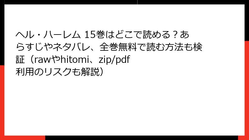 ヘル・ハーレム 15巻はどこで読める?あらすじやネタバレ、全巻無料で読む方法も検証(rawやhitomi、zip/pdf利用のリスクも解説)