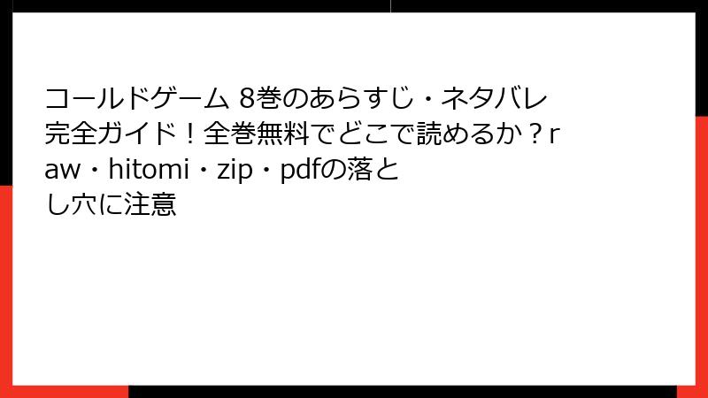 コールドゲーム 8巻のあらすじ・ネタバレ完全ガイド!全巻無料でどこで読めるか?raw・hitomi・zip・pdfの落とし穴に注意