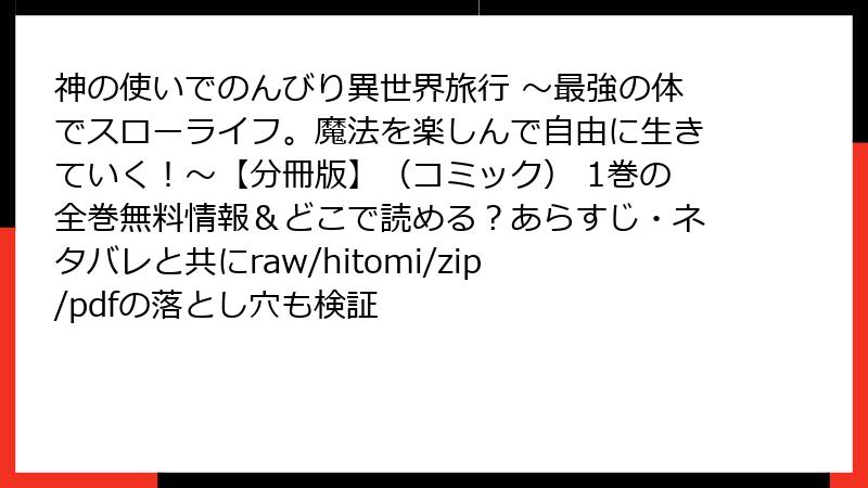 神の使いでのんびり異世界旅行 ~最強の体でスローライフ。魔法を楽しんで自由に生きていく!~【分冊版】(コミック) 1巻 を海賊版サイトで読むリスク