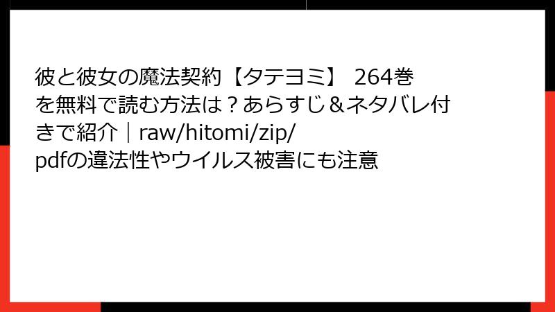 この記事では、「彼と彼女の魔法契約【タテヨミ】」の264巻に焦点を当て、詳細なネタバレを解説します。未読の方はご注意ください。物語の核心に触れるため、読了後の振り返りや議論に最適です。全体の流れを尊重しつつ、キーイベントを深掘りします。