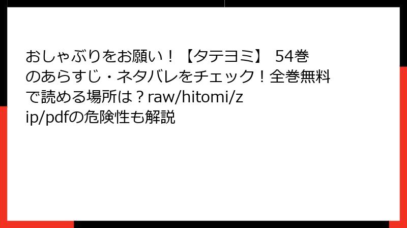 人気のタテヨミ漫画「おしゃぶりをお願い!【タテヨミ】」を、raw、hitomi、zip、pdf、漫画バンクなどの海賊版サイトで読むことは、一見手軽に思えますが、さまざまな深刻なリスクを伴います。この記事では、そうした海賊版サイトを利用する際の潜在的な危険を詳しく解説します。法的問題からセキュリティの脅威、さらには倫理的な側面までを掘り下げ、なぜ正規のルートで楽しむべきかを考えていきましょう。海賊版はクリエイターの権利を侵害するだけでなく、利用者自身にも大きな害を及ぼす可能性があります。