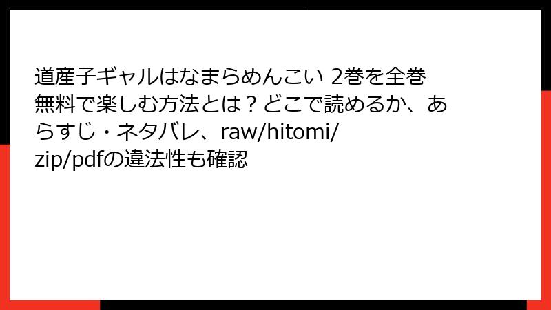 人気のラブコメ漫画「道産子ギャルはなまらめんこい」を、海賊版サイトで無料で読もうと考える人もいるかもしれません。しかし、そんな行為には深刻なリスクが伴います。この記事では、raw、hitomi、zip、pdf、漫画バンクなどの違法サイトを利用する危険性を、法的・セキュリティ・経済的・倫理的な観点から詳しく掘り下げます。海賊版は一見お得に見えますが、結局自分自身や社会に悪影響を及ぼす可能性が高いのです。安全で合法的な方法を選ぶことを強くおすすめします。