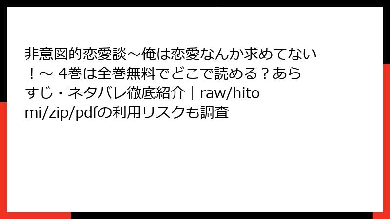 非意図的恋愛談~俺は恋愛なんか求めてない!~をraw/hitomi/zip/pdf/漫画バンクなどの海賊版サイトで読むリスクの詳細