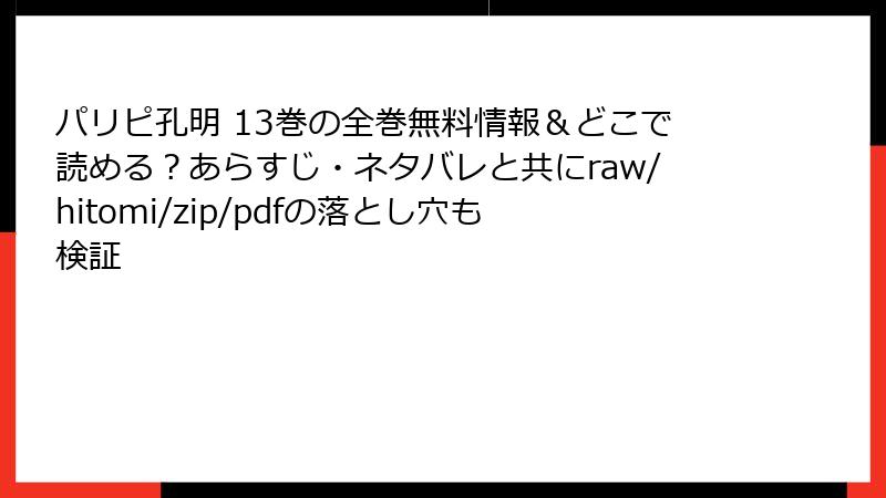 人気漫画「パリピ孔明」をraw、hitomi、zip、pdf、漫画バンクなどの海賊版サイトで無料で読むのは魅力的ですが、深刻なリスクが伴います。この記事では、海賊版サイト利用の法的、セキュリティ、倫理的、経済的な側面を詳しく解説。知らずに利用すると、後悔する事態になる可能性が高いです。以下で、各リスクを深掘りします。