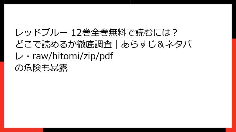 人気格闘技漫画『レッドブルー』の12巻を、raw、hitomi、zip、pdf、漫画バンクなどの海賊版サイトで読むのは一見便利に見えますが、実は深刻なリスクが伴います。この記事では、そうした違法サイトを利用する危険性を詳しく解説します。法的問題からセキュリティの脅威まで、さまざまな側面から掘り下げ、なぜ正規の手段で楽しむべきかを考えていきましょう。海賊版は作者や業界に損害を与えるだけでなく、利用者自身にも大きな害を及ぼす可能性が高いのです。
