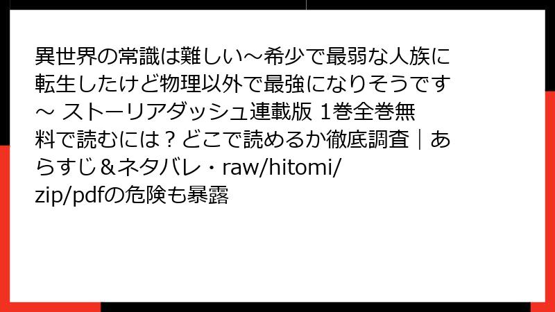 異世界の常識は難しい~希少で最弱な人族に転生したけど物理以外で最強になりそうです~ ストーリアダッシュ連載版 1巻全巻無料で読むには?どこで読めるか徹底調査|あらすじ&ネタバレ・raw/hitomi/zip/pdfの危険も暴露