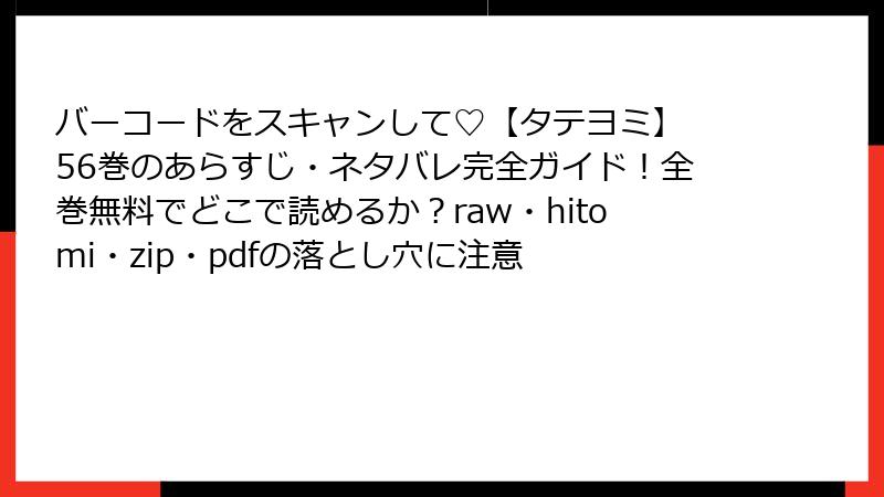 海賊版サイトで「バーコードをスキャンして♡【タテヨミ】」を読むのは、法的・セキュリティ・倫理的・品質面で多大なリスクを伴います。これらの問題を避けるため、公式プラットフォームを利用することが推奨されますが、詳細はここでは触れず、リスクの深刻さを認識することが重要です。最終的に、海賊版は一時的な利便性を提供するものの、長期的な損失が大きい行為です。
