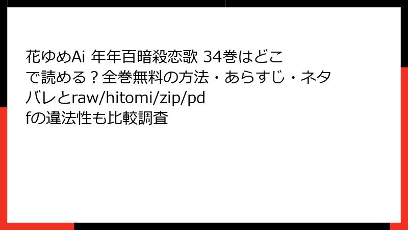 人気漫画「年年百暗殺恋歌」を、raw、hitomi、zip、pdf、漫画バンクなどの海賊版サイトで無料で読もうとする行為は、一見魅力的に見えますが、多大なリスクを伴います。これらのサイトは著作権を無視した違法アップロードが主流で、利用者は法的・セキュリティ面で深刻な問題に直面する可能性があります。本記事では、そのリスクを法的側面からセキュリティ、経済、倫理まで詳しく解説します。海賊版利用を避け、正規ルートで楽しむことを強くおすすめします。