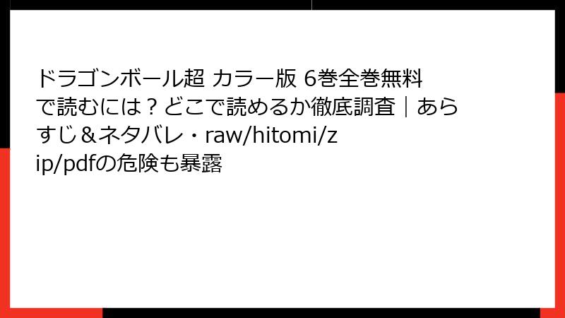 『ドラゴンボール超』カラー版6巻のような人気漫画を、raw、hitomi、zip、pdf、漫画バンクなどの海賊版サイトで読むのは一見便利に思えますが、実は深刻なリスクが伴います。これらのサイトは著作権を侵害した違法アップロードコンテンツを提供しており、利用者は知らず知らずのうちにトラブルに巻き込まれる可能性が高いです。この記事では、そんな海賊版サイト利用の主なリスクを詳しく解説します。法的問題からセキュリティ脅威まで、複数の側面から掘り下げてみましょう。