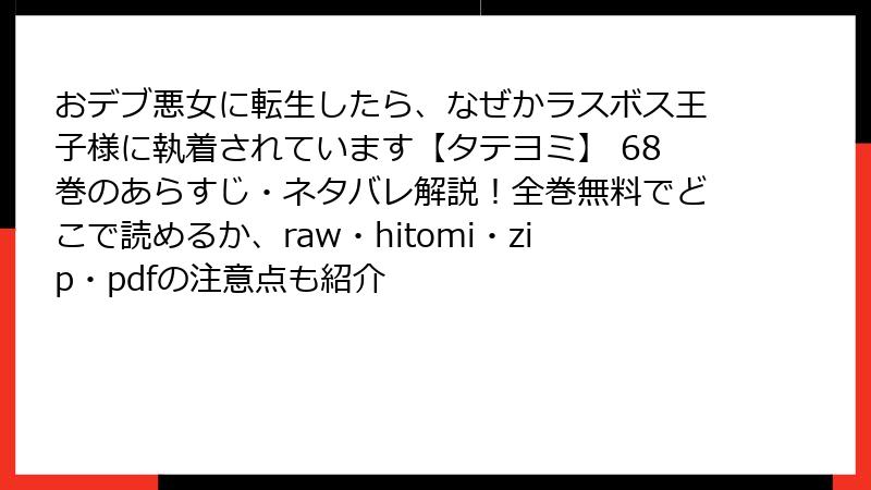 おデブ悪女に転生したら、なぜかラスボス王子様に執着されています【タテヨミ】 68巻のあらすじ・ネタバレ解説!全巻無料でどこで読めるか、raw・hitomi・zip・pdfの注意点も紹介