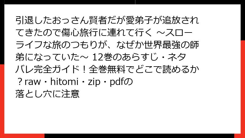 - 引退したおっさん賢者だが愛弟子が追放されてきたので傷心旅行に連れて行く ~スローライフな旅のつもりが、なぜか世界最強の師弟になっていた~ 12巻 ネタバレ情報詳解