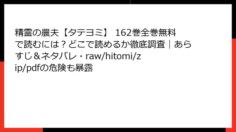 - 精霊の農夫【タテヨミ】 162巻をraw/hitomi/zip/pdf/漫画バンクなどの海賊版サイトで読むリスク