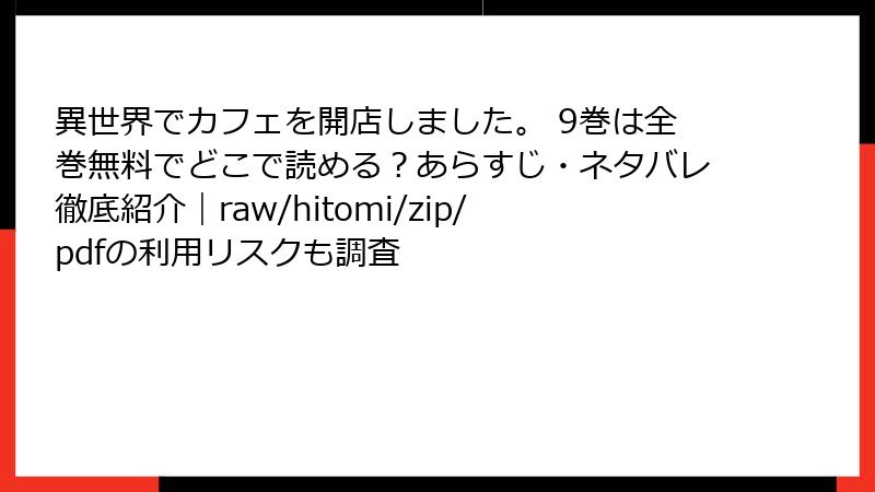 - 異世界でカフェを開店しました。 9巻を海賊版サイトで読むリスク