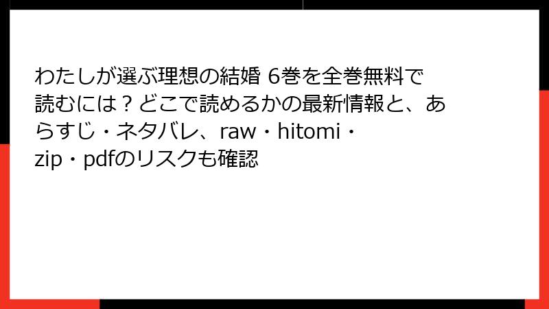 この記事では、漫画『わたしが選ぶ理想の結婚』の6巻に焦点を当て、詳細なネタバレ情報を提供します。6年付き合った恋人との関係がさらに揺らぐ展開が中心で、ヒロインの内面的な葛藤が深まります。ネタバレ満載なので、未読の方は注意してください。物語の流れを追いながら、重要なシーンやキャラクターの心理を徹底的に掘り下げます。