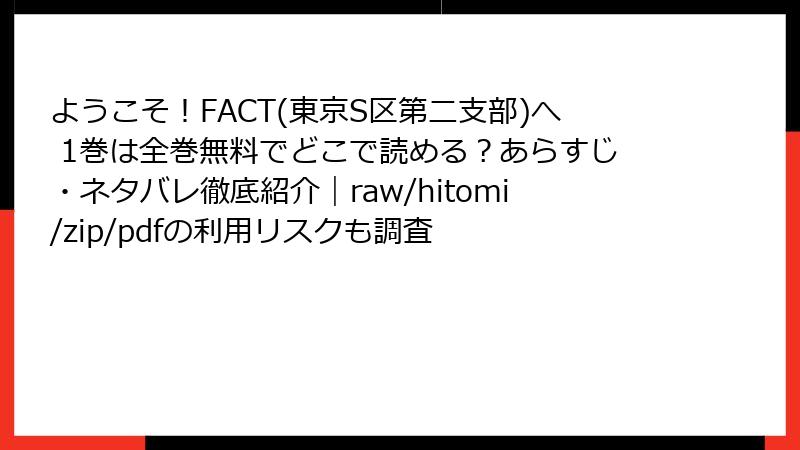 - ようこそ!FACT(東京S区第二支部)へ 1巻のネタバレ情報を詳しく解説