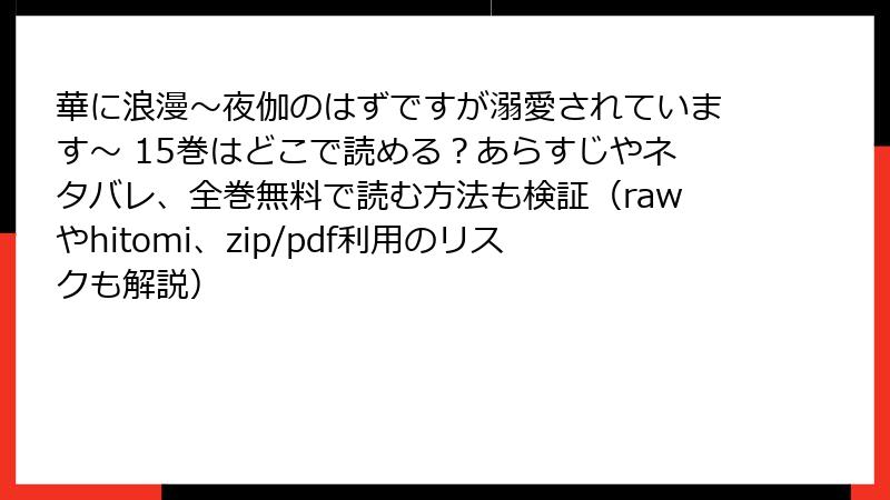 華に浪漫~夜伽のはずですが溺愛されています~ 15巻はどこで読める?あらすじやネタバレ、全巻無料で読む方法も検証(rawやhitomi、zip/pdf利用のリスクも解説)