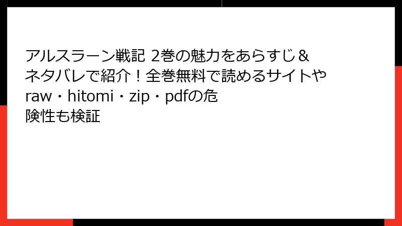 - アルスラーン戦記 2巻を海賊版サイトで読むリスク