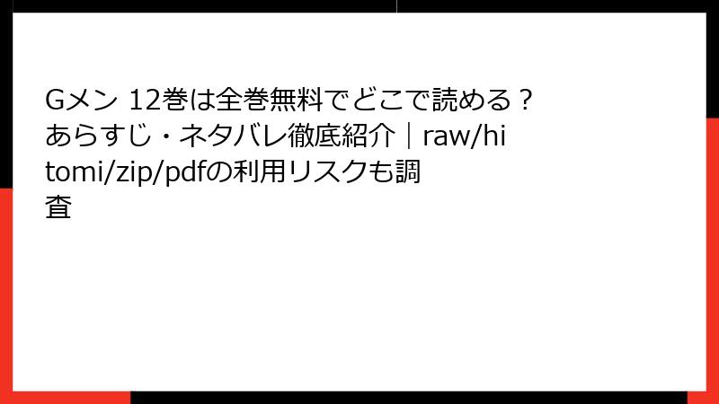 Gメン 12巻は全巻無料でどこで読める?あらすじ・ネタバレ徹底紹介|raw/hitomi/zip/pdfの利用リスクも調査