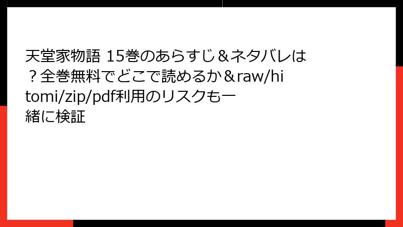 raw、hitomi、zip、pdf、漫画バンクなどの海賊版サイトで天堂家物語 15巻を読むのは、法律、セキュリティ、経済、倫理の多角的なリスクを伴います。これらのリスクを避けるためには、正規のプラットフォームを利用することが不可欠です。無料で読みたい場合でも、公式の試し読みやキャンペーンを活用し、違法サイトを避ける意識が重要です。最終的に、安全で持続可能な楽しみ方が、長期的な満足につながります。