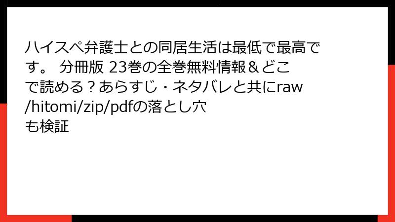 人気ラブコメ漫画「ハイスペ弁護士との同居生活は最低で最高です。」の分冊版23巻について、今回はネタバレ満載で深掘りします。この巻は、主人公たちの関係がさらに進展する一方で、予期せぬ家族の介入がドラマを盛り上げます。シリーズファン必見の展開を、詳細にまとめていきましょう。注意:以下は完全なネタバレを含むので、未読の方はご注意ください。
