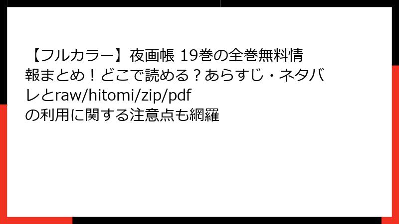 - 【フルカラー】夜画帳 19巻を海賊版サイトで読むリスク