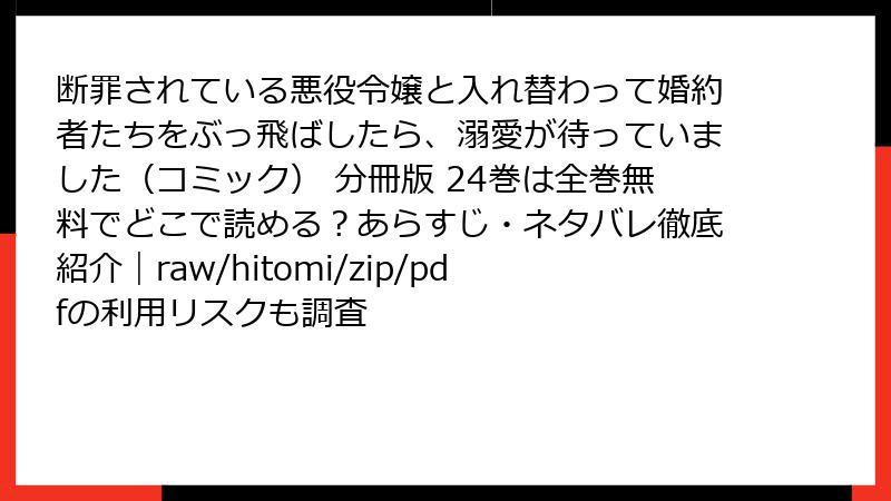 人気コミック「断罪されている悪役令嬢と入れ替わって婚約者たちをぶっ飛ばしたら、溺愛が待っていました」を、raw、hitomi、zip、pdf、漫画バンクなどの海賊版サイトで読むのは一見便利に見えますが、深刻なリスクが伴います。この記事では、そのリスクを法的、セキュリティ、プライバシーなどの観点から詳しく解説します。海賊版利用は避け、正規ルートを検討することを強くおすすめします。