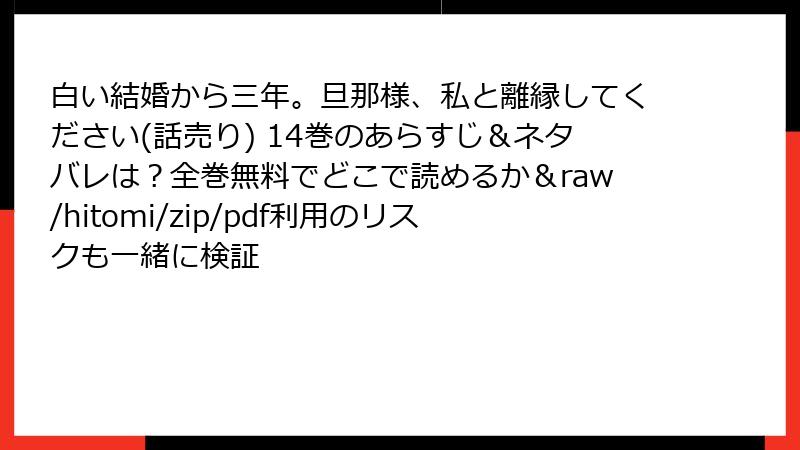 - 白い結婚から三年。旦那様、私と離縁してください 14巻の衝撃ネタバレ