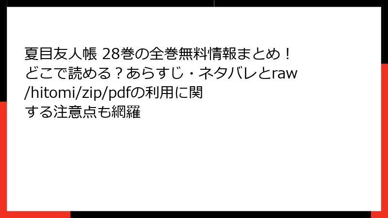 夏目友人帳 28巻の全巻無料情報まとめ!どこで読める?あらすじ・ネタバレとraw/hitomi/zip/pdfの利用に関する注意点も網羅