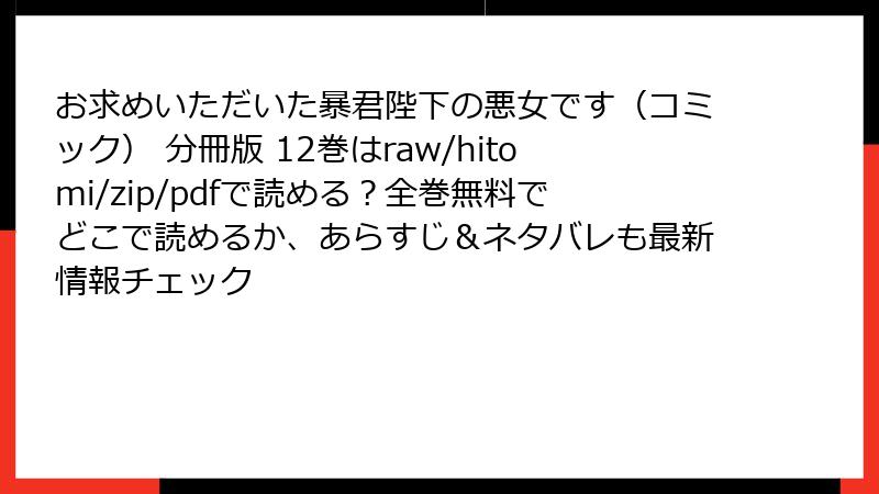 この記事では、人気コミック「お求めいただいた暴君陛下の悪女です」の分冊版12巻に焦点を当て、ストーリーの詳細を深掘りします。復讐とロマンスが交錯するファンタジー世界で、主人公のラースが繰り広げるドラマチックな展開をお届けします。ネタバレを含むので、未読の方はご注意ください。