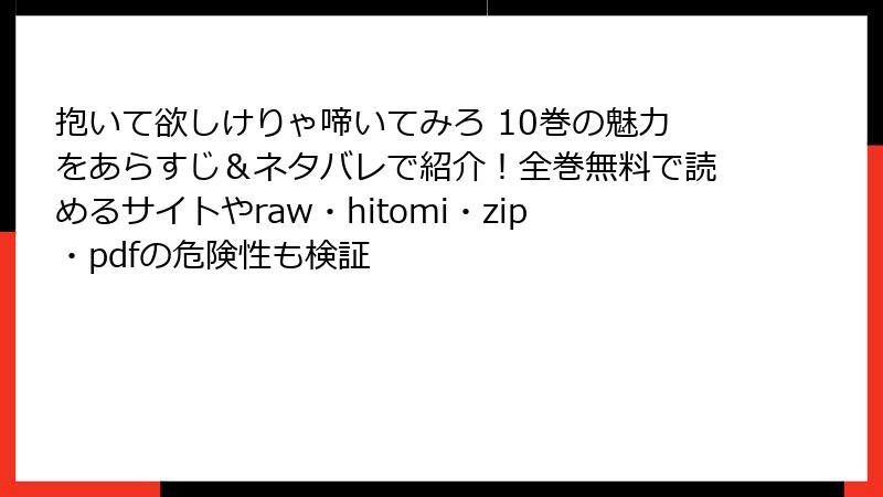 - 抱いて欲しけりゃ啼いてみろ 10巻の魅力