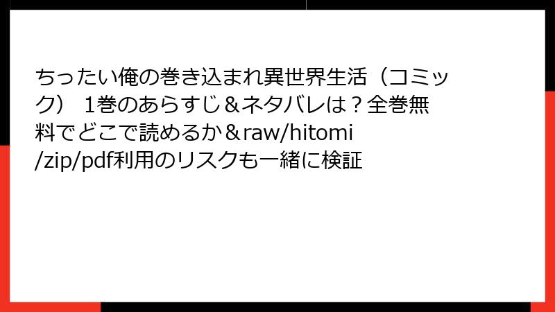 この記事では、コミック「ちったい俺の巻き込まれ異世界生活」を、raw/hitomi/zip/pdf/漫画バンクなどの海賊版サイトで読むことのリスクについて、ブログ形式で詳しく掘り下げます。無料で手軽にアクセスできるように見えますが、さまざまな危険が潜んでいます。法的問題からセキュリティの脅威、さらには業界全体への影響までを解説します。海賊版利用を検討している方は、ぜひこのリスクを理解して、正規ルートを選ぶことをおすすめします。