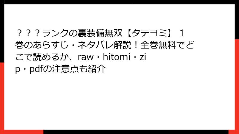 - ???ランクの裏装備無双【タテヨミ】 1巻 あらすじ