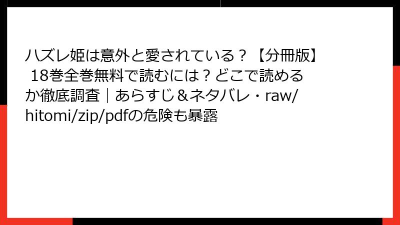 ハズレ姫は意外と愛されている?【分冊版】 18巻全巻無料で読むには?どこで読めるか徹底調査|あらすじ&ネタバレ・raw/hitomi/zip/pdfの危険も暴露 ハズレ姫は意外と愛されている?【分冊版】 X Facebook はてブ Pocket LINE コピー 2026.01.03