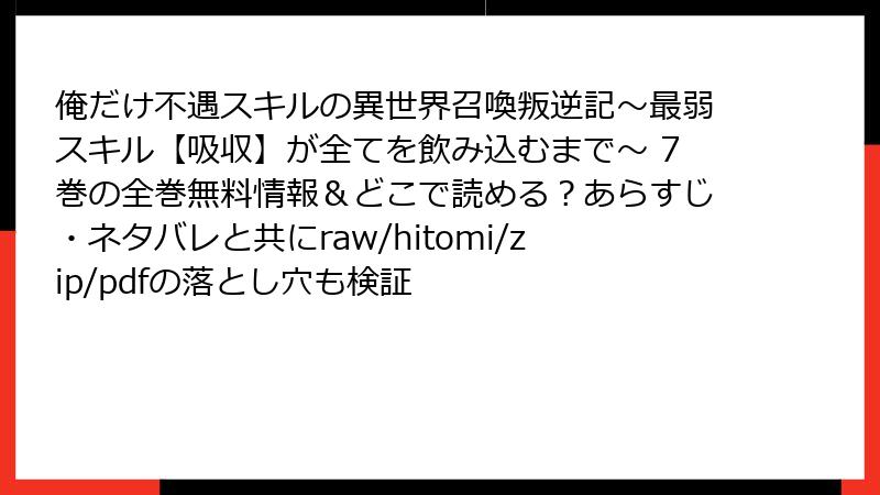 - 漫画のネタバレ情報: 異世界での冒険と人間ドラマの深層