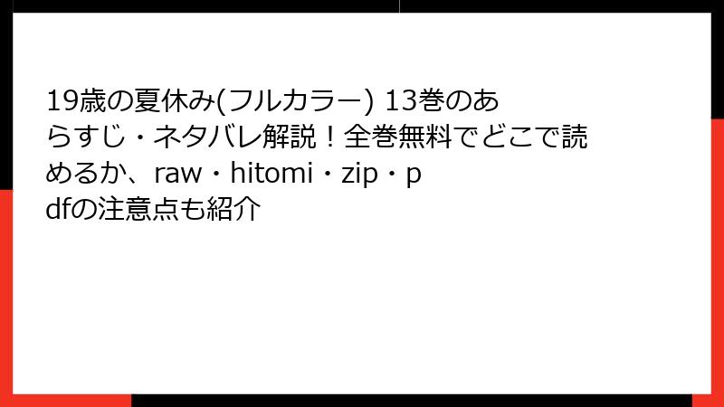 19歳の夏休み(フルカラー) 13巻のあらすじ・ネタバレ解説!全巻無料でどこで読めるか、raw・hitomi・zip・pdfの注意点も紹介