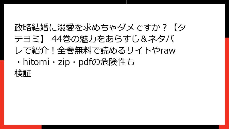 注意: この記事には、漫画「政略結婚に溺愛を求めちゃダメですか?【タテヨミ】」44巻の重大なネタバレが含まれます。未読の方は閲覧をお控えください。物語の核心に触れる展開を詳しく解説し、キャラクターの内面や意外な転換点を掘り下げます。ロマンティックな政略結婚の行方を、巻のハイライトを中心に振り返りましょう。