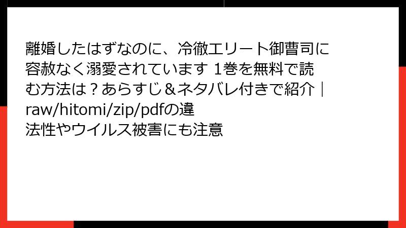 離婚したはずなのに、冷徹エリート御曹司に容赦なく溺愛されています 1巻を無料で読む方法は?あらすじ&ネタバレ付きで紹介|raw/hitomi/zip/pdfの違法性やウイルス被害にも注意