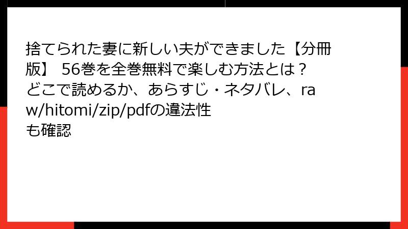 「捨てられた妻に新しい夫ができました」などの人気漫画を、raw、hitomi、zip、pdf、漫画バンクなどの海賊版サイトで読むことは、一見無料で便利に見えますが、さまざまな深刻なリスクを伴います。これらのサイトは著作権を侵害した違法コンテンツを提供しており、利用者は法的・セキュリティ面での問題に直面する可能性が高いです。以下では、主なリスクをカテゴリ別に詳しく解説します。利用を検討する際は、これらの危険性を十分に理解し、正規のプラットフォームを選ぶことをおすすめします。