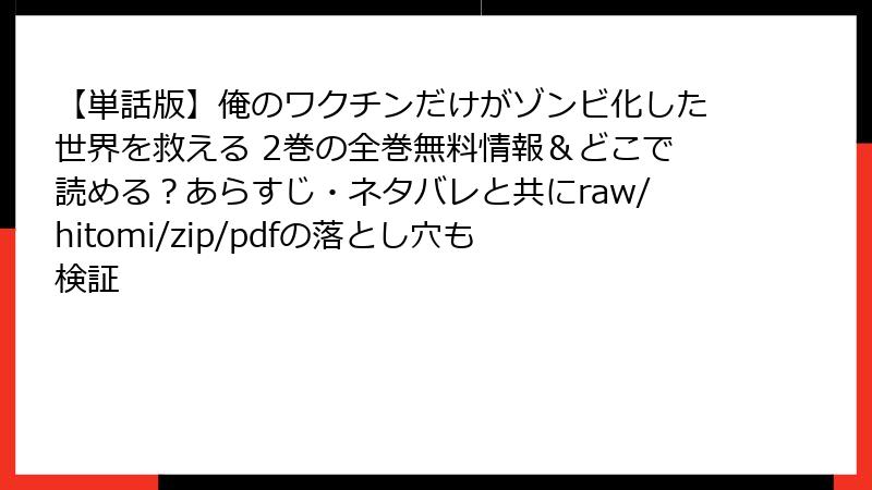 【単話版】俺のワクチンだけがゾンビ化した世界を救える 2巻の全巻無料情報&どこで読める?あらすじ・ネタバレと共にraw/hitomi/zip/pdfの落とし穴も検証 【単話版】俺のワクチンだけがゾンビ化した世界を救える X Facebook はてブ Pocket LINE コピー 2026.01.05