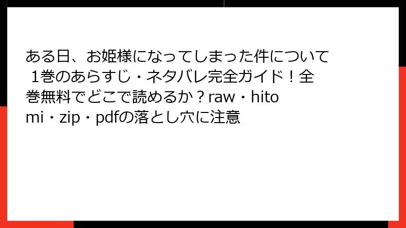 ある日、お姫様になってしまった件について 1巻のあらすじ・ネタバレ完全ガイド!全巻無料でどこで読めるか?raw・hitomi・zip・pdfの落とし穴に注意 ある日、お姫様になってしまった件について X Facebook はてブ Pocket LINE コピー 2026.01.05